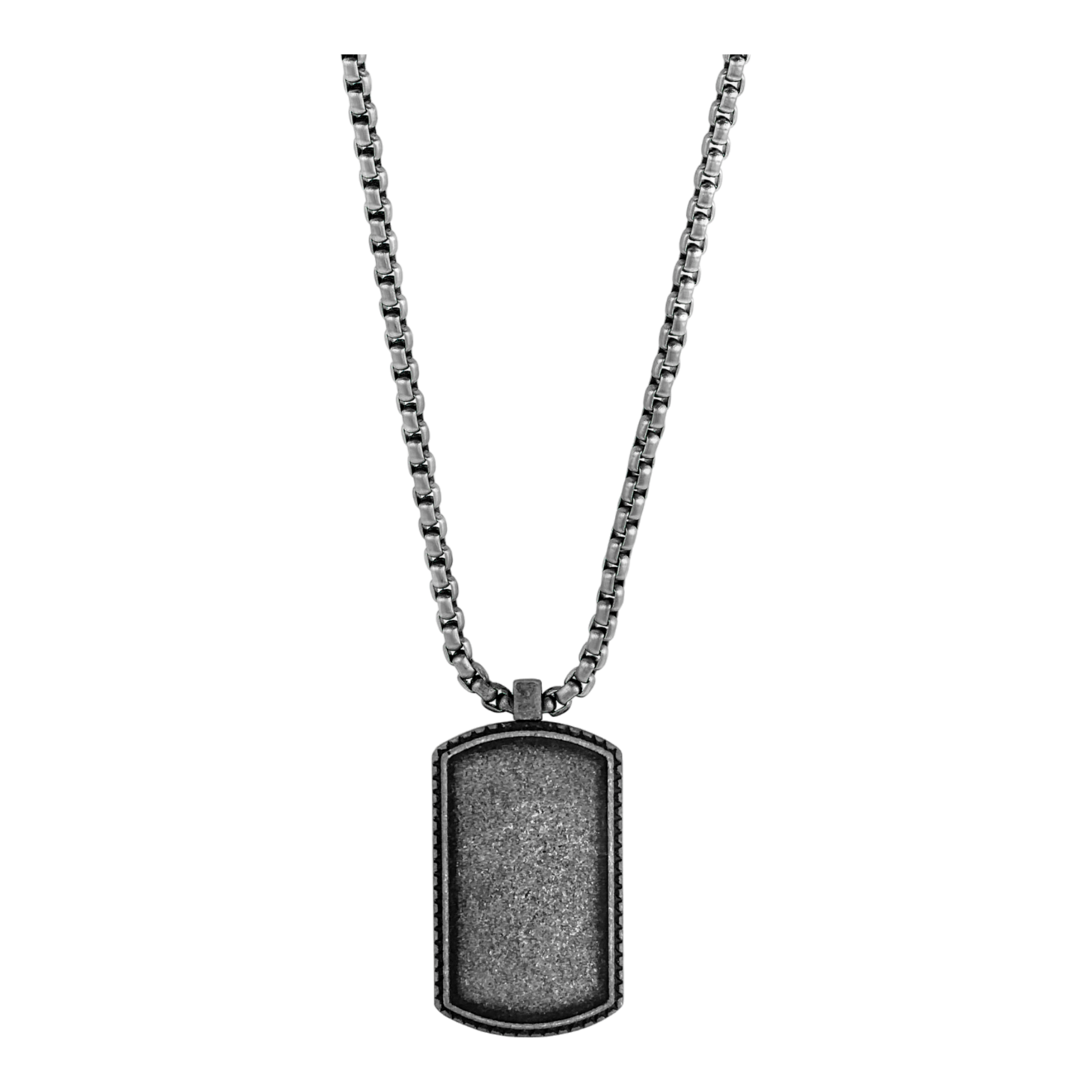 Diese Halskette aus hochwertigem Edelstahl verfügt über einen einzigartigen Dog Tag-Anhänger mit den Maßen 35x21 mm, der von 3 mm breiten Ketten begleitet wird. Mit einer Länge von 70 cm und einem zuverlässigen Karabinerverschluss verbindet sie mühelos Stil und Zweckmäßigkeit. Vervollständige Dein Ensemble, indem Du es mit anderen Schmuckstücken unseres DECKs kombinierst, um einen polierten, koordinierten Auftritt zu erzielen.